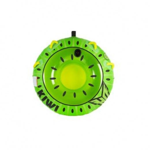 The Kiwi is a single rider, donut shaped tube that was designed with FUN in mind.    Sit in the Kiwi with your feet forward or lay on your belly to put yourself in the heart of the action.  The Kiwi has 2 sets of handles in just the right spot for either riding style.   You will enjoy ultimate comfort with soft foam handles with built in knuckle guards.  The 2-Way Boston valve makes inflation and deflation a snap and you’re sure to turn heads with this cool fruit inspired design.  Get yourself a Kiwi and grab a slice of the sweet fruity fun! Features: 2 Riding Options – Pick Your Direction Boston Valve for Quick and Easy Inflation/Deflation Durable PVC Bladder Nylon Covered Soft Foam Handles 54” Diameter
