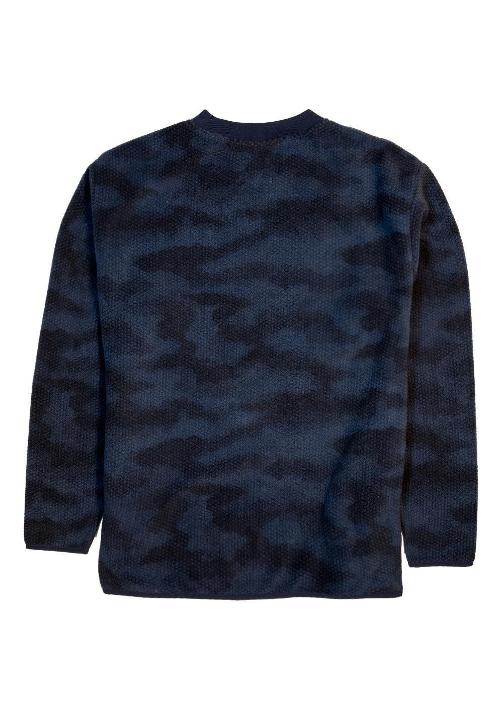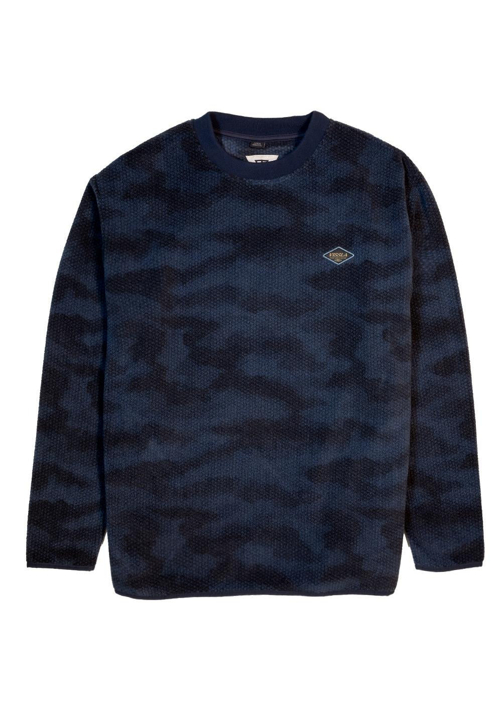 Printed recycled polyester polar fleece crew neck. Lycra Binding at writs and hem. 2 hands pockets. A Vissla woven patch as an identificaton on the front chest.