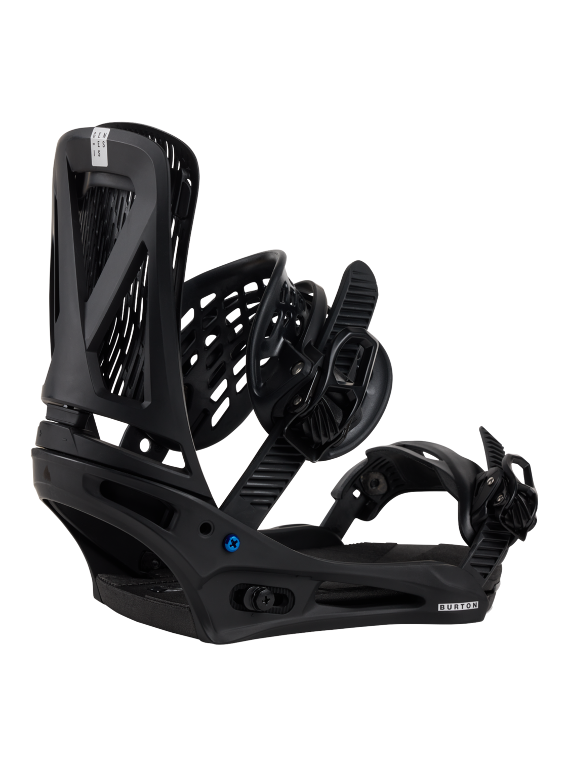 Simply put, our goal with the Burton Genesis was to build the most comfortable binding ever, with strength and power that meets the demands of our team riders. Featuring a slightly softer flex and advanced anatomical design, it combines the plushest in cushioning with straps and hi-back that cradle and wrap your boots in ultimate comfort. Advanced composites keep it lightweight; The Hinge (available on the EST® version only) activates medial and lateral flex for less fatigue and easier ollies. Offered in two versions, choose the across-the-board compatibility of Re:Flex™ or pair the EST® model with boards featuring The Channel® mounting system for the ultimate in flex, feel, and adjustability.