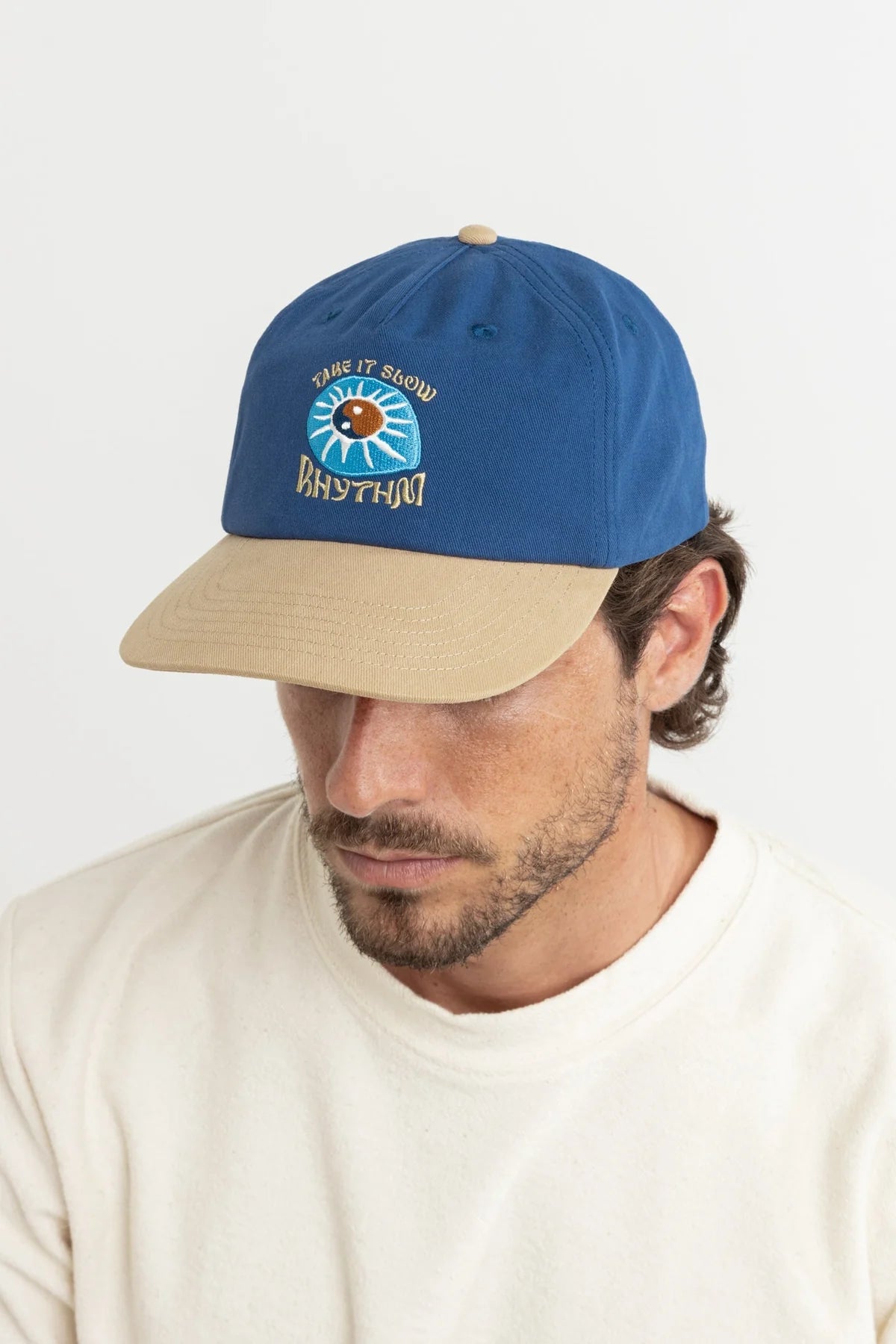 • 5 PANEL, DECONSTRUCTED, CONTRAST CROWN & PEAK, EMBROIDERED LOGO, ADJUSTABLE SNAP BACK CLOSURE, RHYTHM LABELS & TRIMS