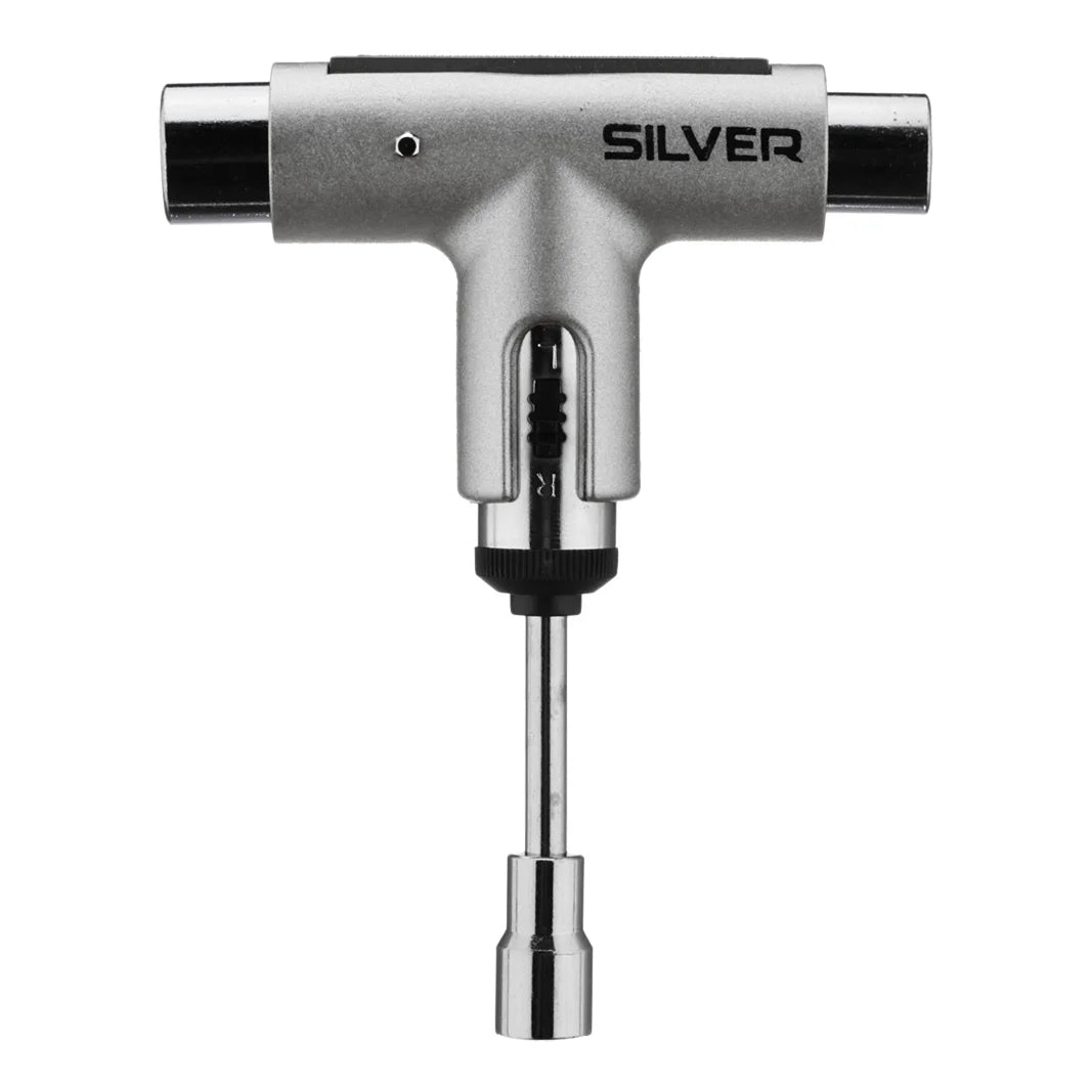 The Silver Tool is the perfect tool for complete skateboard assembly with quality craftmanship and versatile features including the exclusive hardware ratchet, slide out screwdriver and precision file. All components necessary to assemble and maintain your board in one easy to use, multi-functional skateboard tool.