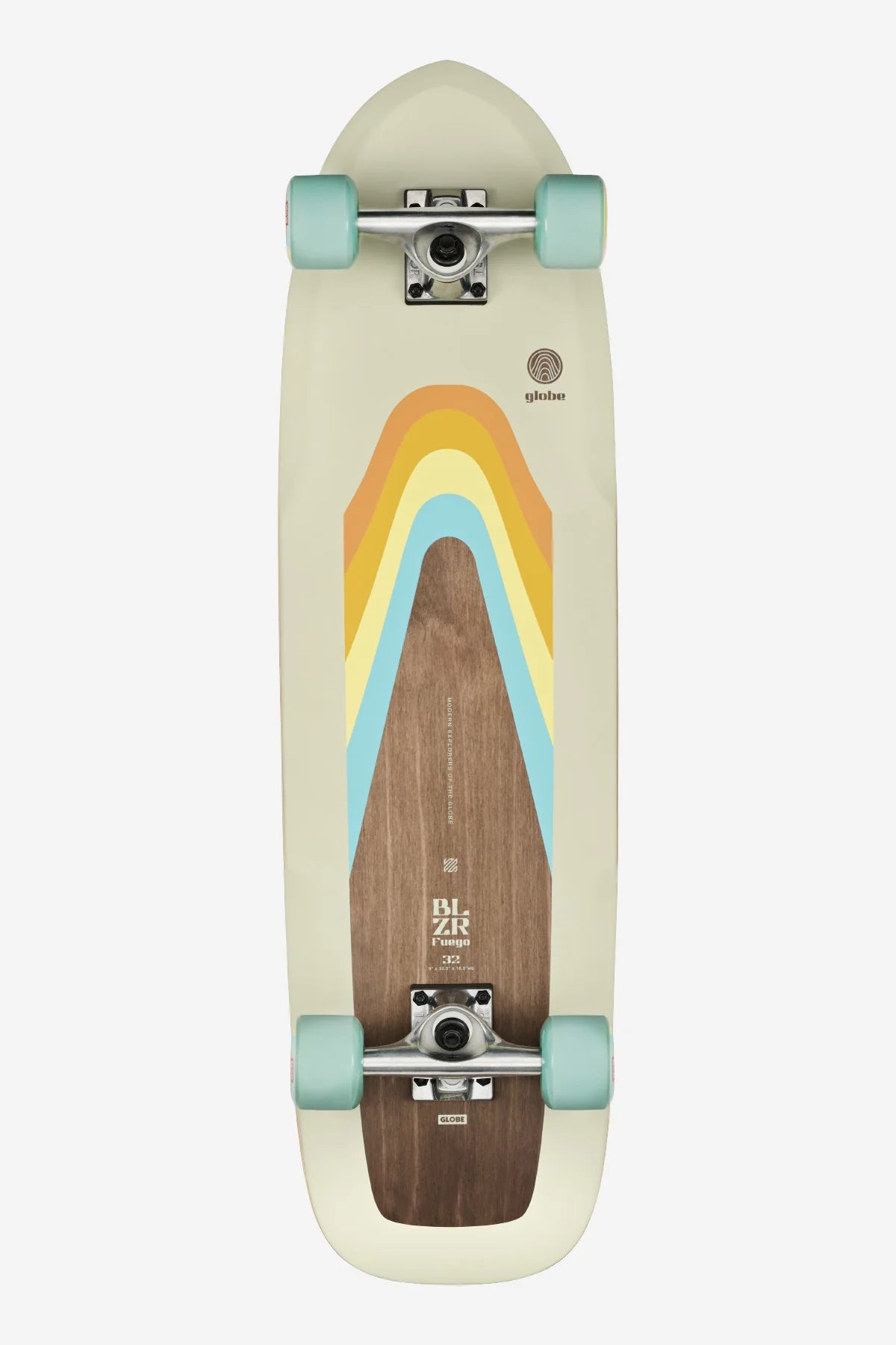 Our new Blazers are so hot they’re en fuego! The Blazer Fuego 32 in Horizon is everything there is to love about Globe Blazers with added ride surface area and higher functionality to blaze new territory. This board is 9 wide x 32.5 length and has an 18.5 wheel base, and is equipped with Tensor ATG (All-Terrain-Geometry) trucks, that turn consistently smooth, and 61mm Dozer 78a cruiser wheels.
