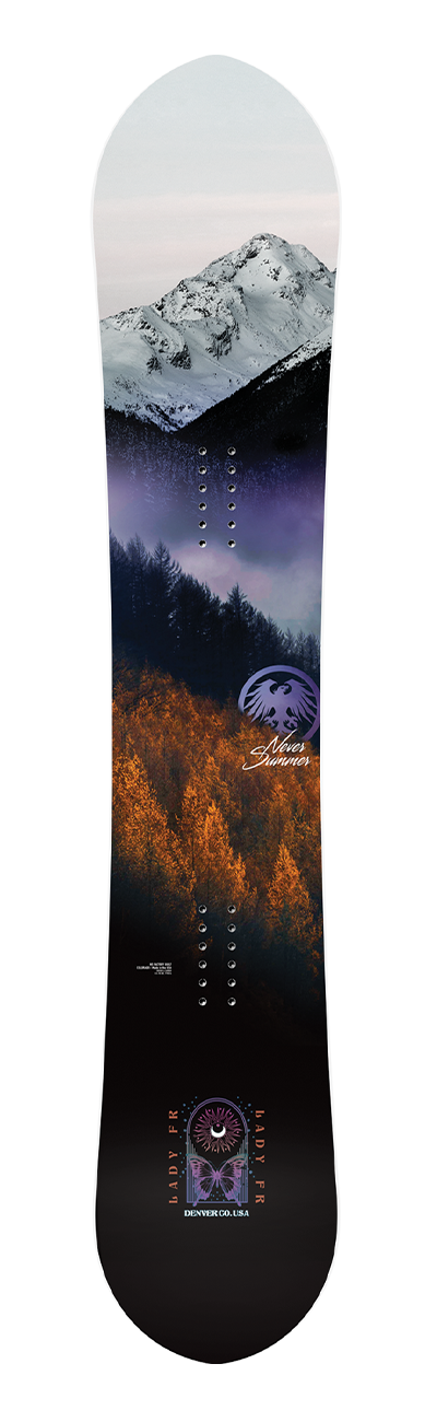 A mash up between the Lady West and the Proto FR, the top selling Lady FR is the bomb! An exceptionally well rounded, technologically advanced freeride board for the lady rider who rips the biggest terrain. Three camber zones in the Triple Camber Fusion create ultimate edge hold and power, while a setback stance, early rise nose and 5mm taper create effortless float in powder with stability at speeds. Not to mention, it’s beautiful.