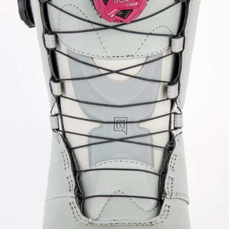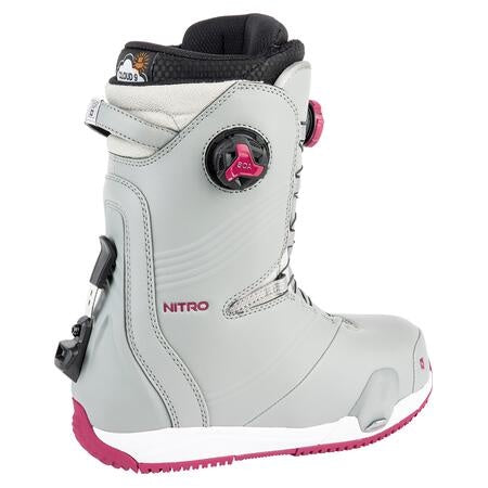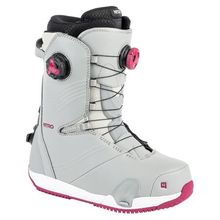 The new Nitro Dynasty BOA® Step On® combines the best of three worlds to provide the ultimate fit, precision, and convenience in a high-end all-mountain snowboard boot for those looking for the best. The legendary Nitro fit combined with the easy entry Step On® system and the dialed fit of the Dual BOA® Fit System creates a powerhouse of a boot that the world has never seen before! The Armored Spine, Flex Link Design, and Internal Ankle Support provide the foothold and even support to keep you charging in confidence all day long. The combination of the Women's Step On ® Rubber Sole and Step On ® EVA Midsole provide a sure foothold when hiking and just walking to and from the lift. Meanwhile, the Cloud 9 Liner, Therminator Shield, and Ortholite® Triple Density Footbed will keep your feet warm and cozy even on the coldest of days. The feature we believe helps tie this entire boot together and offers an unparalleled is the patented Nitro Re/Lace Liner Locker to give you that perfect foothold from the first to last run. If you are looking for the best in snowboard boot technology packed into a pro-caliber boot, check out a pair of the brand-new Dynasty BOA® Step On® snowboard boots.