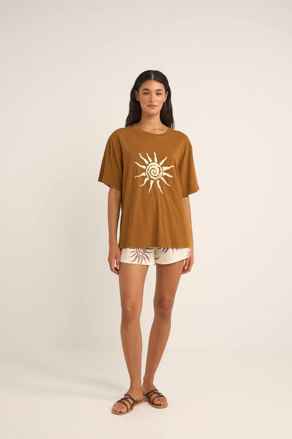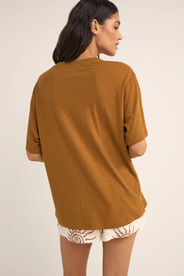 Navigate the vastness of the sea with the Brown Seafarer Oversized T-Shirt. Blending 55% linen with 45% cotton, this oversized tee features a front chest print on a breathable linen-cotton jersey. The relaxed silhouette, round crew neck and elbow-length short sleeves make it perfect for those full of coastal wanderlust.