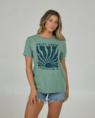 The Perfect Set Boyfriend Tee in Sage is a loose-fitting, short sleeve tee featuring a screen printed chest print.