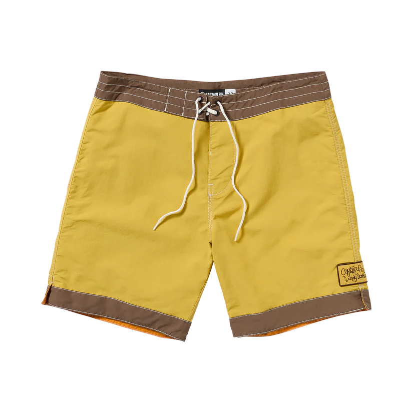 Our Captain Fin vivid Mineral Yellow 18" boardshorts combine lightweight nylon with side vents and pockets. Mineral Yellow color-blocked details offer quick-drying style.