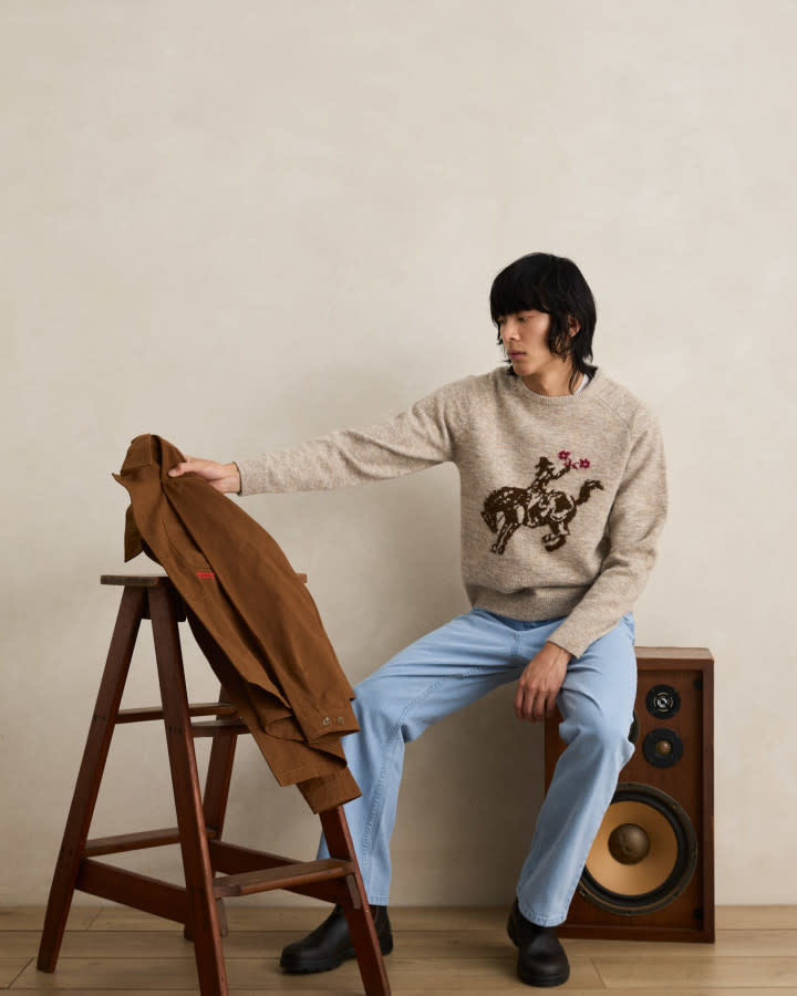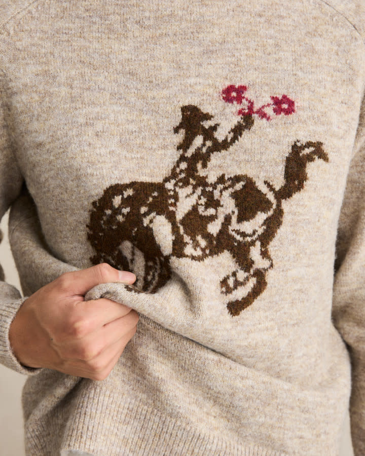 This pullover knit in natural is made from an artisan-inspired blend, complete with a centre chest woven yarn design that adds an elevated touch to a relaxed silhouette.