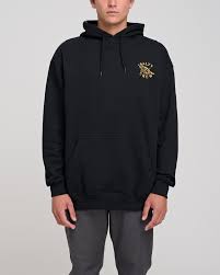 Chaser MW Fleece in Black is made from our signature mid-weight Cotton/Polyester Brushed Fleece, 300gsm in weight. Featuring two-piece hood with encased drawcord, rib knit cuffs & hem, self-fabric kanga pocket & Salty Crew clamp label at hood opening. Screen Printed front and back prints.