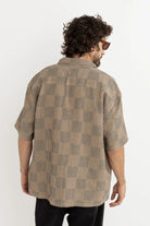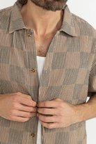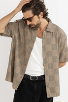 Make a statement with the Tanner Check SS Shirt in Tobacco. This relaxed-fit shirt features a plastic button closure, a one-piece collar, and a straight hem, ensuring a polished look for casual outings. The Rhythm labels and trims complete this stylish piece, perfect for layering or wearing alone.