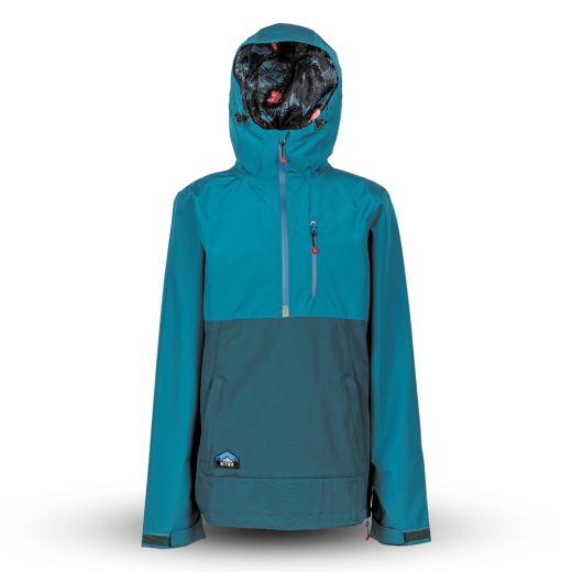 Streamlined side entry zip, water resistant front and chest zip, front and back hood adjust, large kangaroo chest pocket, zip pass pocket, adjustable cuff, sleeve gaiter with thumbhole, powder skirt with jacket to pant connection, chest pocket cord exit to inside, whistle.