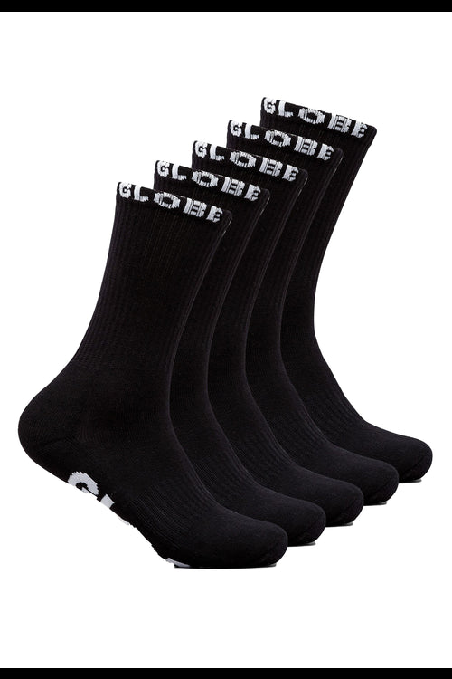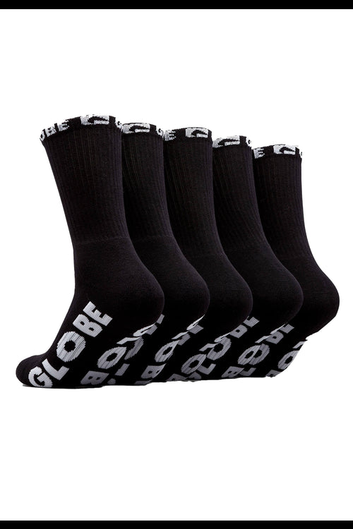 The Globe Blackout Sock 5 Pack contains 75% cotton, 22% nylon, 3% elastane