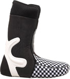 The boot features an asymmetrical flex zone that gives your ankles room for a more natural flex. Strapped in or out.