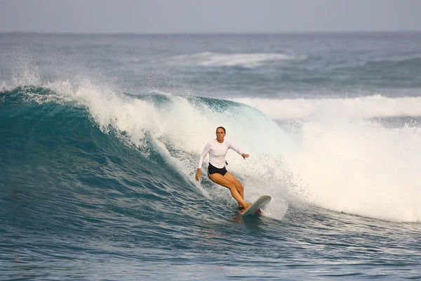 The Salt Gypsy Chi Chi aims to improve your wave count, it has a huge range. This board has the rocker tuned for a shortboard, and we have dropped the volume per size ratio so it fits within the Salt Gypsy mandate to suit women’s smaller frames. It’s a fast board that offers plenty of flow, and is the perfect choice for maximising your wave count even when the conditions aren’t perfect.