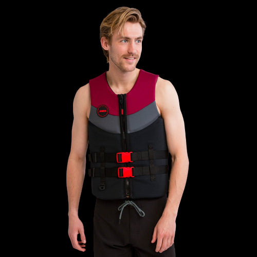 The Jobe Neoprene vest for men has been made from the softest, most comfortable neoprene around. This vest has been outfitted with a YKK front zipper, strong YKK buckles and adjustable webbing straps. Soft PVC-foam sets a new industry standard and makes this 50N ISO-certified vest super soft, flexible and comfortable. An emergency cord can be attached to the D-ring on the front of the vest.