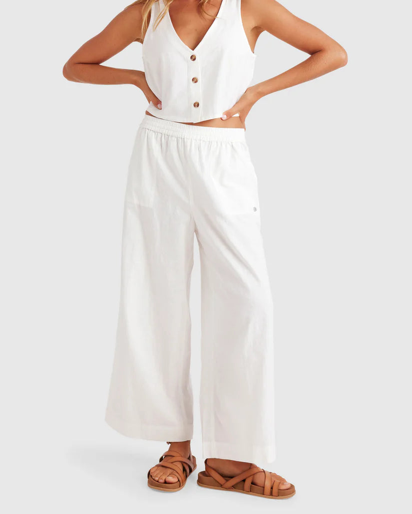 Step into easy-breezy comfort. This mid-weight cotton-linen blend pant has an elasticated waist, offering a relaxed fit that's perfect for beach days or resort lounging. Side pockets add convenience to these effortlessly stylish summer essentials