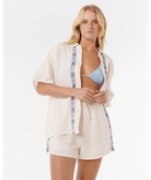 Crafted from a breezy linen-viscose slub, the Oceanic Embroidered Shirt delivers relaxed structure with soft garment washing, a tonal placement print, and subtle metal logo trim. Perfect for dressing up without overdoing it.