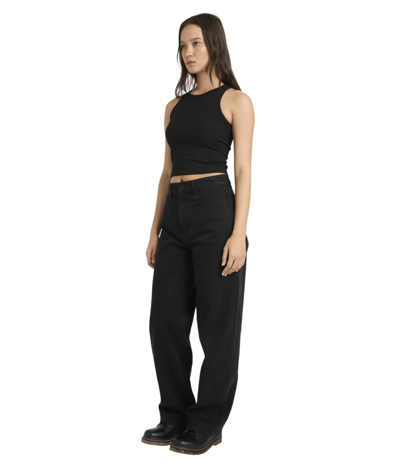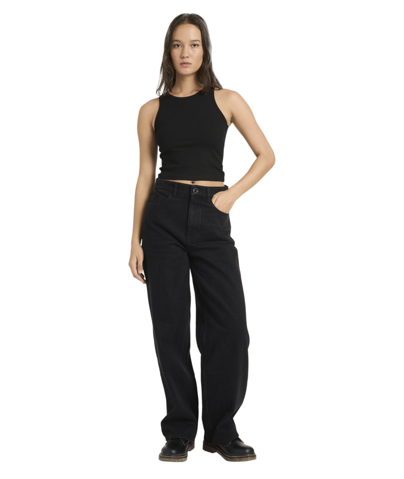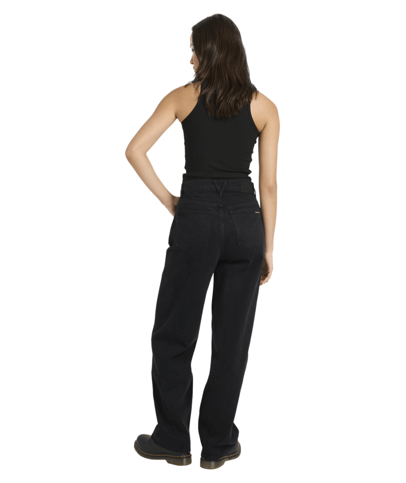 These high-rise straight-leg jeans rock relaxed comfort in 100% cotton denim punctuated by Volcom script and stone embroidery.