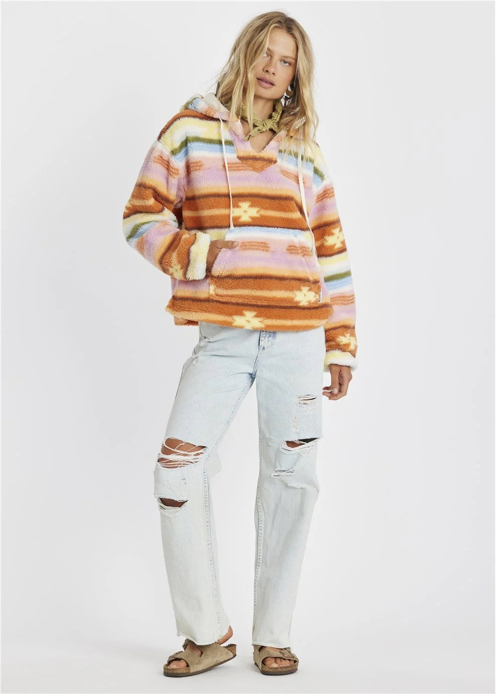 Get cozy and look cool in this Sherpa long sleeve hoodie with a front kanga pocket for all your essentials!