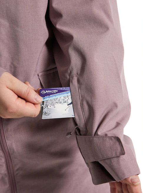 Spend more time riding and less time fussing. The women's Burton Lalik 2L Jacket is cut long for the coverage to keep you warm on cold lift rides and through full days of riding. Layer as needed, and adjust for fit and temp regulation, so you're good to go from first tracks to the final run.