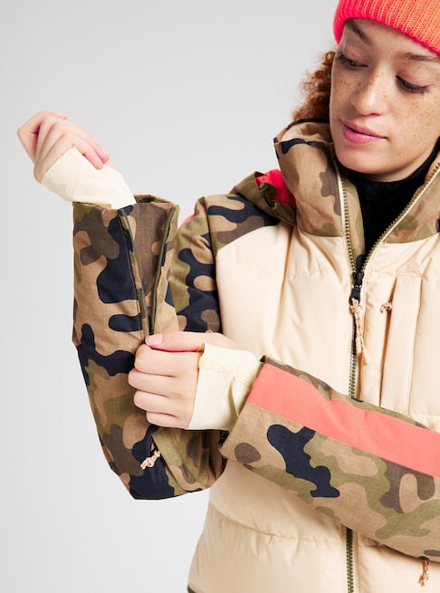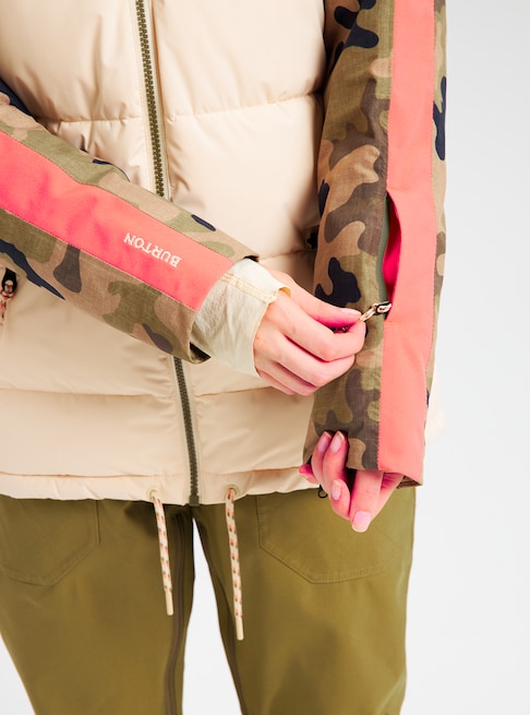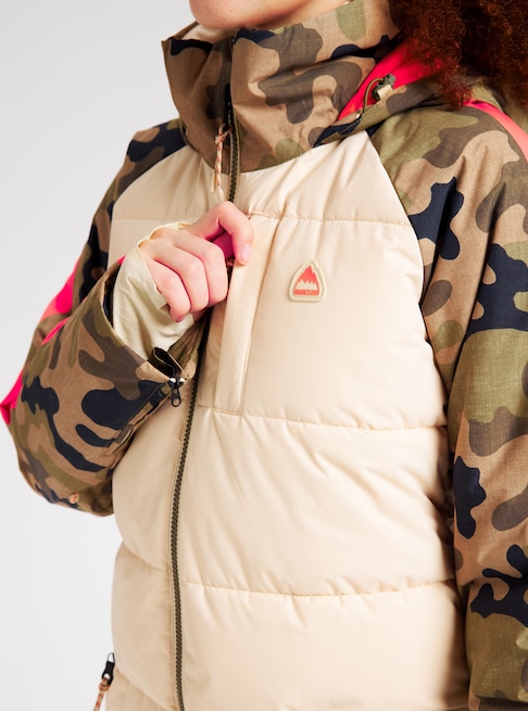Keep the good times coming with the women's Burton Keelan Jacket. The longer-fitting slim jacket is packed with synthetic down insulation for a classic puffy look and the added coverage you want. From stormy chairlift rides to trekking to the next bar, the waterproof shell shrugs off moisture to keep you dry and ready for whatever winter throws at you next.