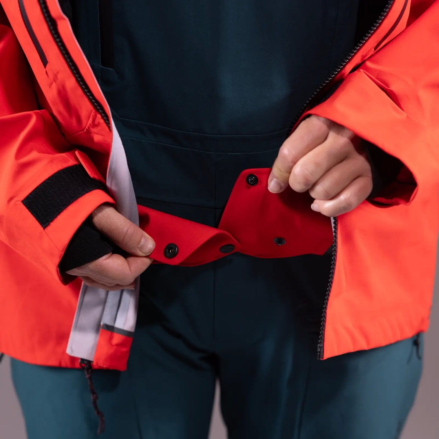 Fabric is 100% recycled 30K waterproof 30K breathable 4-way stretch three-layer laminate shell made without PFAS.