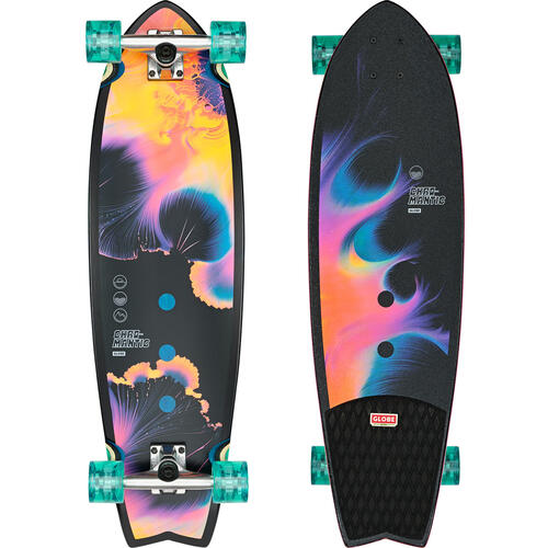 The Chromantic is a surf inspired swallow-tail cruiser featuring mellow concave with kick tail. Featuring medium-length Resin-7 hard rock maple deck, 6.0" Tensor alloy trucks, 62mm 78a wheels and clear broadcast grip.