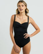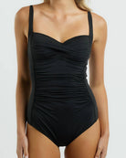 Embrace sleek style in the Billabong Sol Searcher Wrap One Piece Swimsuit in Black Pebble. Perfect for beach days and pool parties.