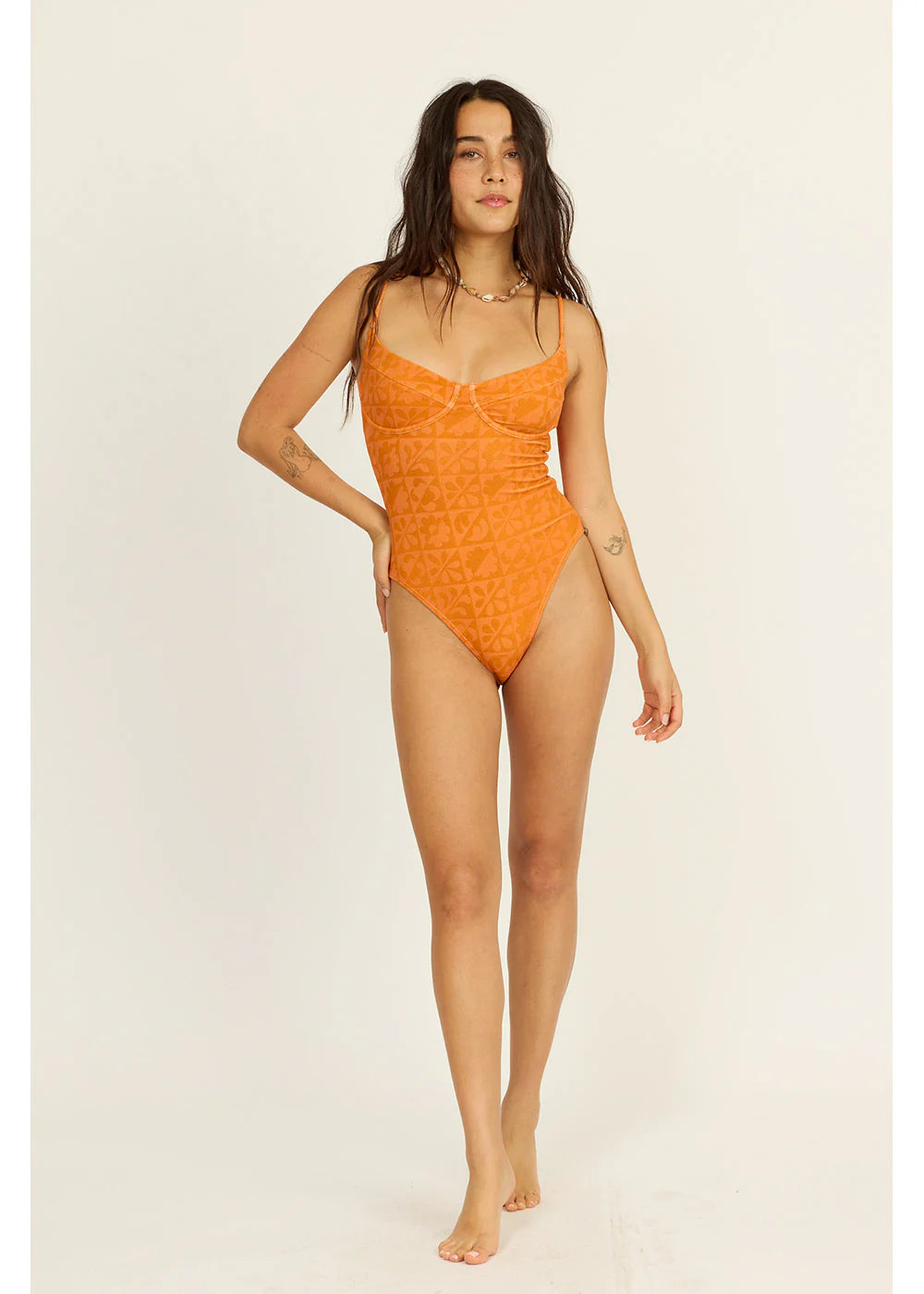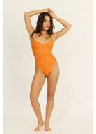 This Day Break one-piece features a cheeky fit with debossed terry fabric and adjustable underwire straps for a perfect, playful vibe.
