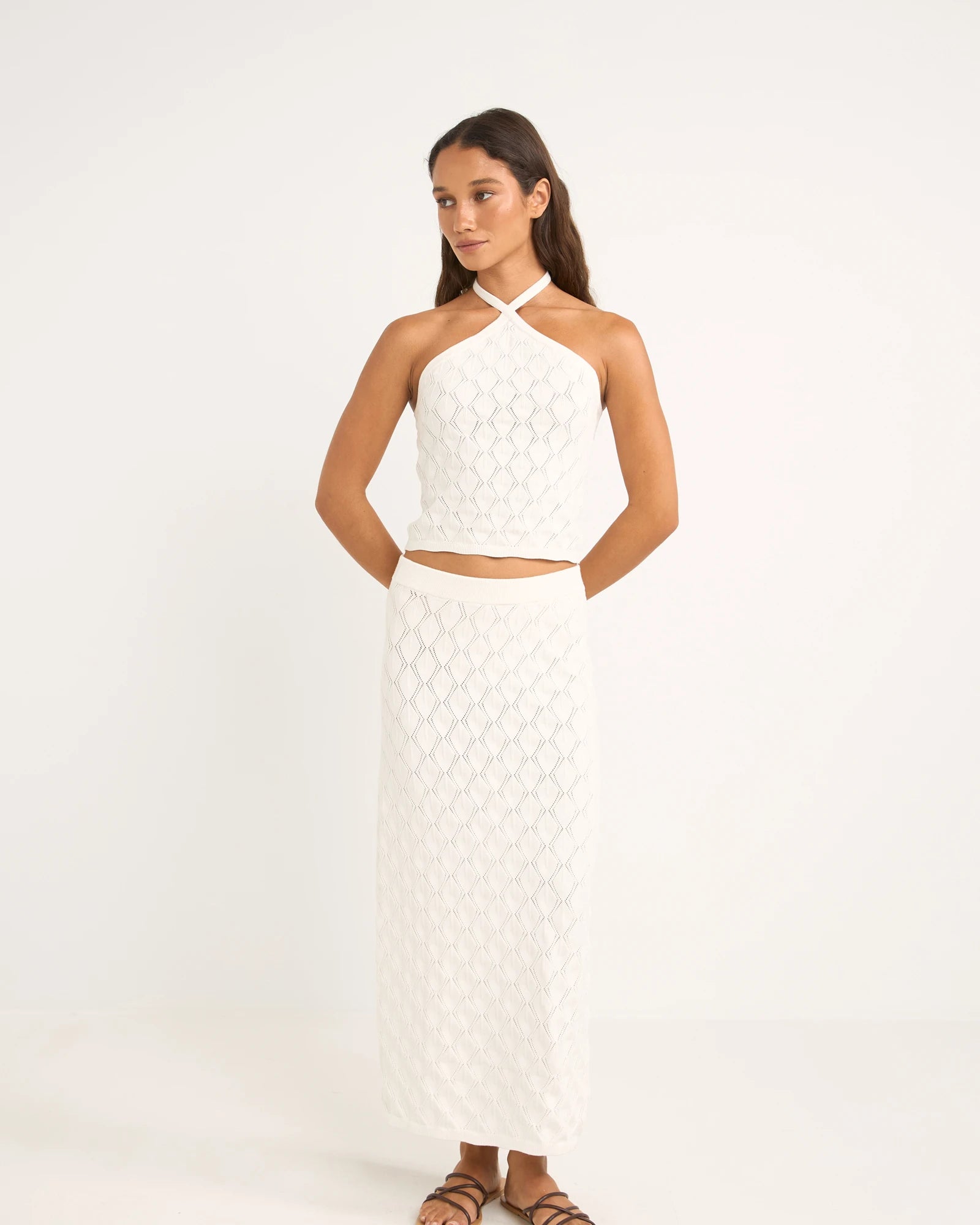 • HIGH NECK KNIT TOP, RIBBED NECK BAND AND BINDING DETAIL WITH RHYTHM TRIMS