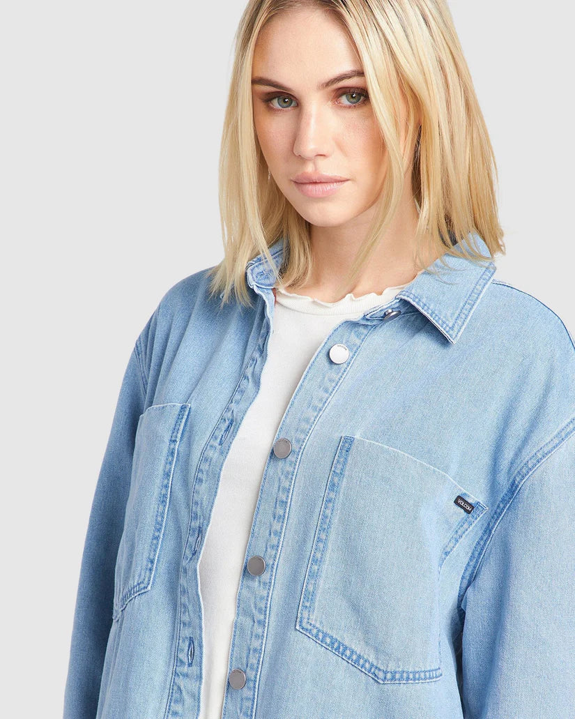 Large chest pockets and dropped back yoke details