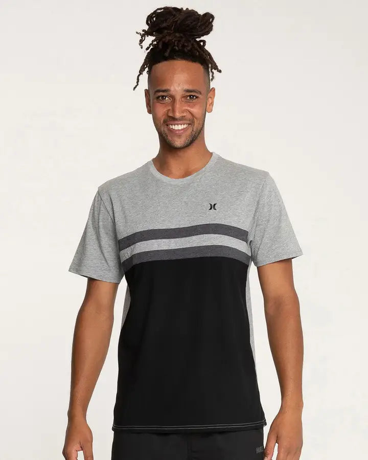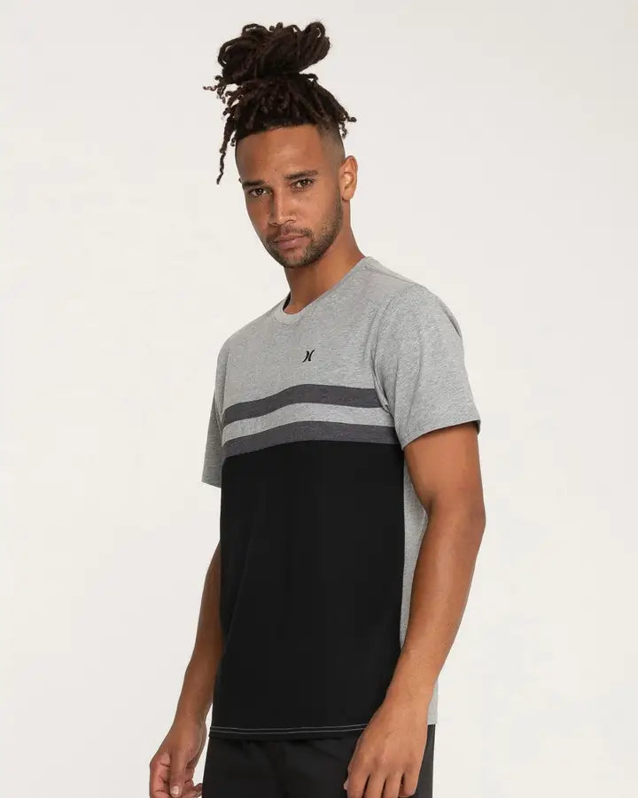 Experience both style and comfort with the Hurley H2O-Dri Blocked Men's T-Shirt in Dark Grey Heather. Made from 140 gsm cotton/polyester jersey material, it has a soft hand feel that makes it perfect for all-day wear.