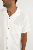 Designed for an effortless, worn-in look, the Daytona SS Shirt in White is washed for a vintage hand feel. A Cuban collar, plastic button closure, and a straight hem make this an easy summer essential.
