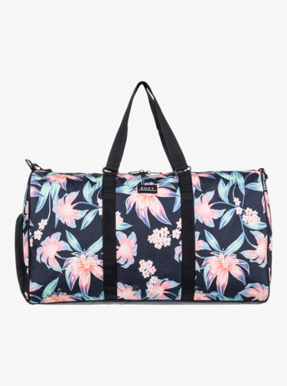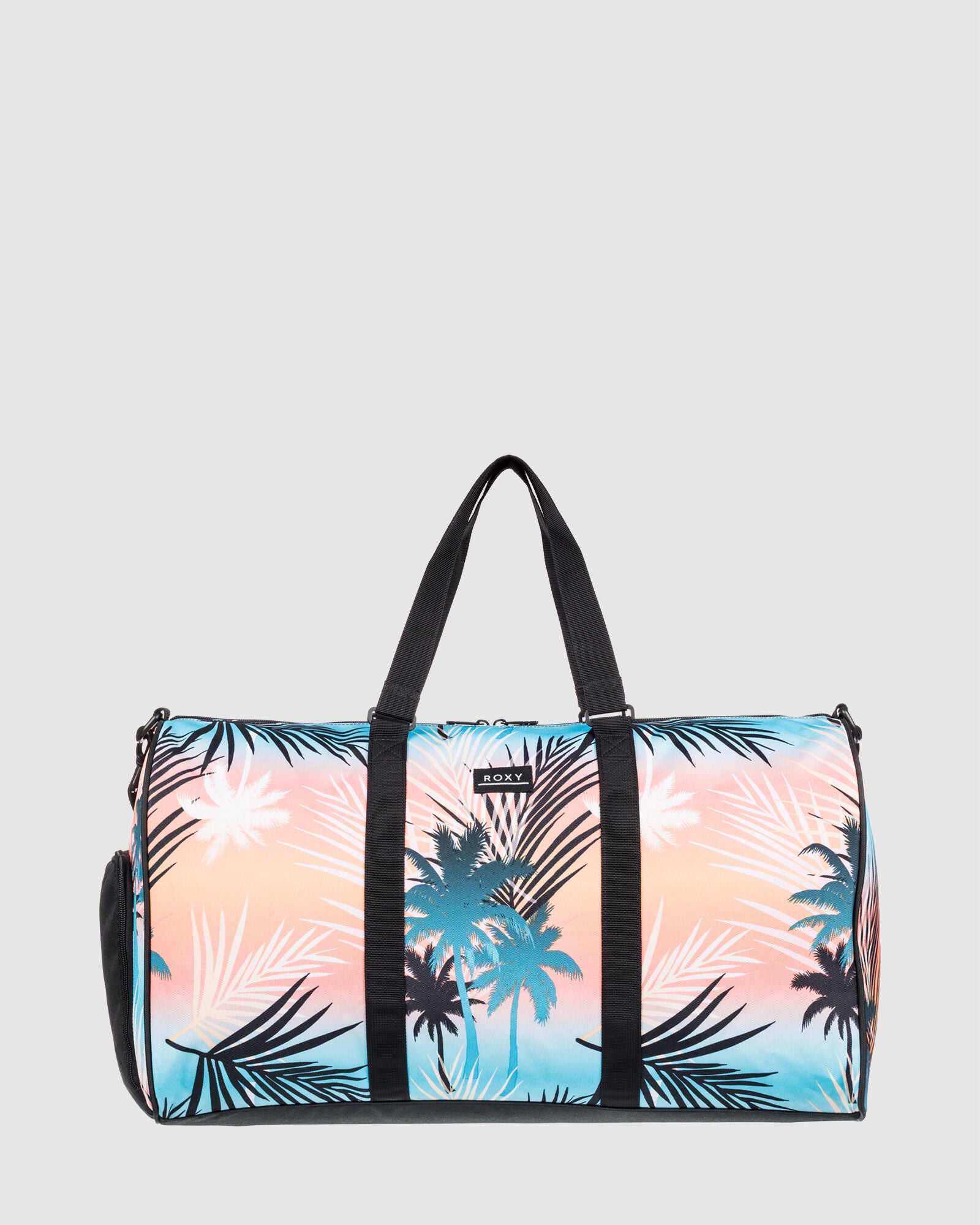 Duffle Bag for Women. Features include: Fabric: Printed and solid recycled polyester fabric, Product appearance may differ slightly depending on print placement, Compartments: 1 main zip-up compartment, 1 zip-up shoe pocket, Straps: Adjustable and removable shoulder strap, Cotton ROXY patch,