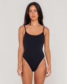 Scoop Neck Swimsuit With Low Back And Adjustable Back Straps. Textured