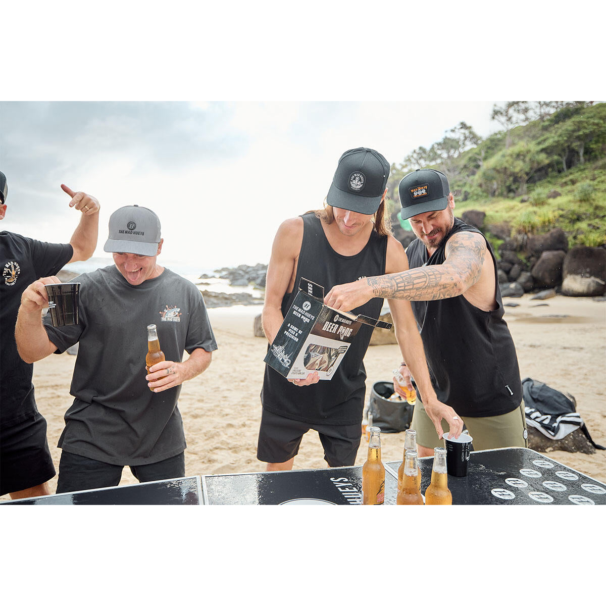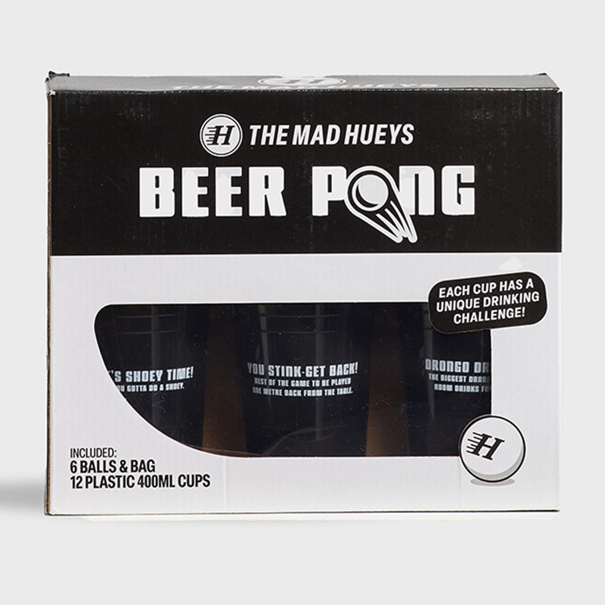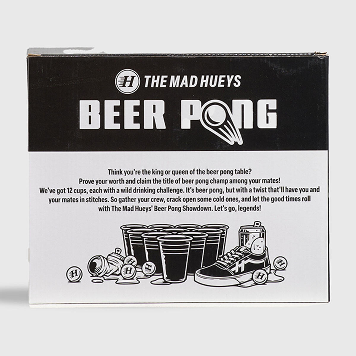 The Mad Hueys Beer Pong: Where legends are made and dignity is optional. Grab your mates, sink some shots, and claim eternal backyard glory—because losing means more than a drink, it means SHAME. Cheers to the absolute carnage that's about to ensue...