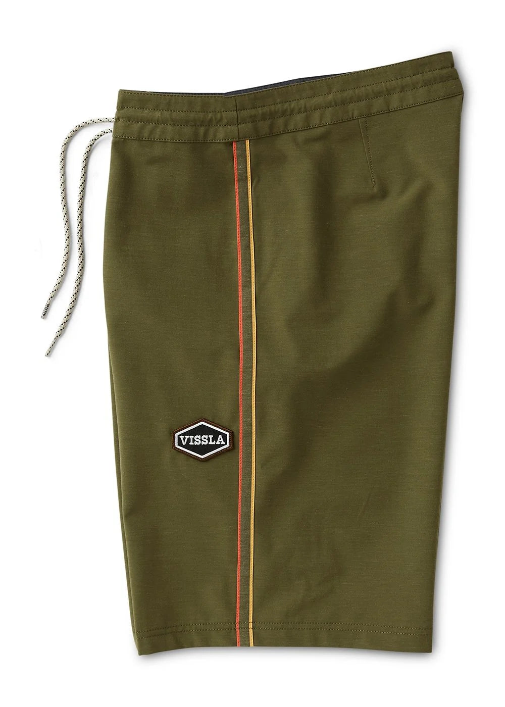 Built for long sessions in and out of the water, the Long Sets Boardshort blends performance and sustainability. Made with 4-way stretch fabric using coconut fibers, recycled polyester (Repreve), and cotton, it offers maximum comfort and flexibility. Designed with an early 2000's Y2K-inspired fit, it features a caliper scalloped hem, a side pocket with an integrated key rope, and a novelty Vissla embroidered patch at the side. With a longer 21” outseam, these boardshorts deliver both function and style for every swell.