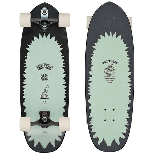 Wide short-wheelbase cruiser with Slant surf/skate trucks for a surf-like carving experience. The Frothy 30" Surf Skate in Sea Saw is constructed from Resin-7 hard rock maple with a mellow concave with kicktail, clear griptape with top art and a paint dipped deck.