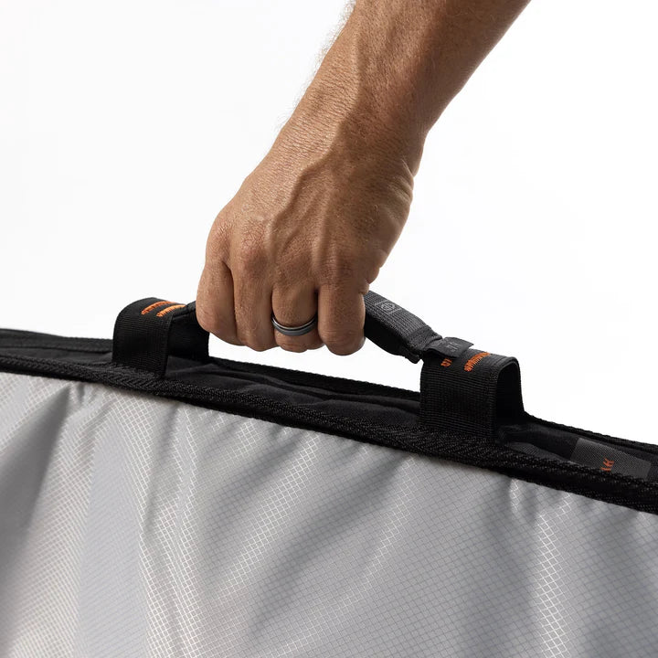 A wider fitting surfboard cover designed for 1 Fish board. This cover has anti shock and anti impact foam combined with an expandable tail gusset that can be secured shut for use with or without fins. Ideal for day-to-day surf trips.