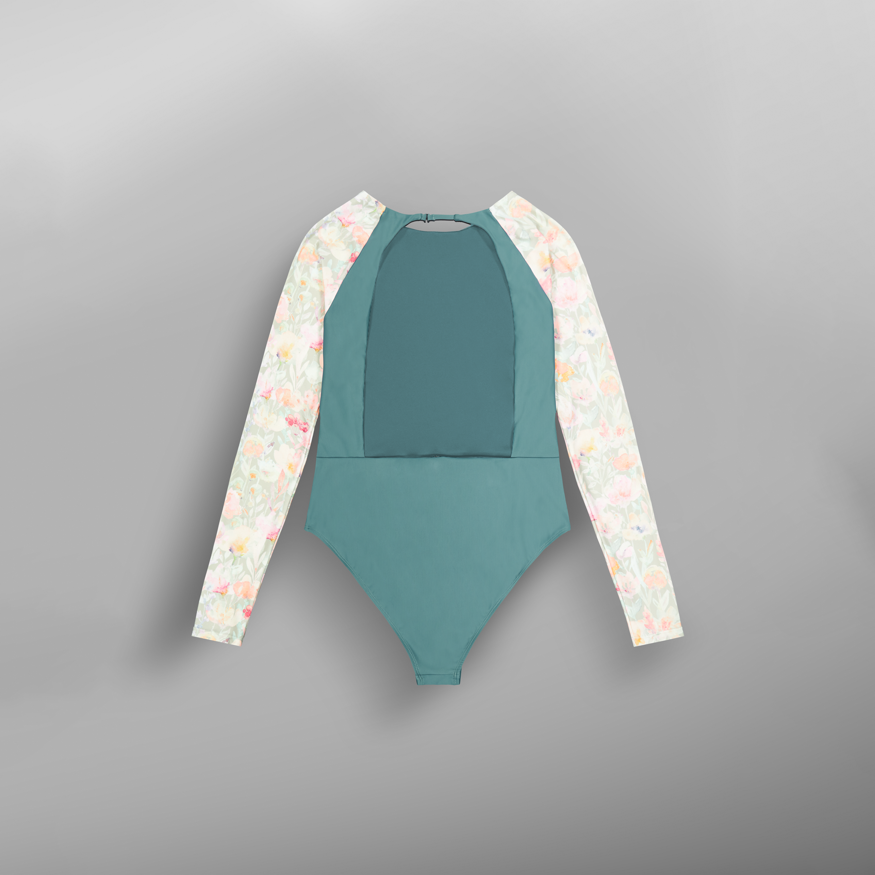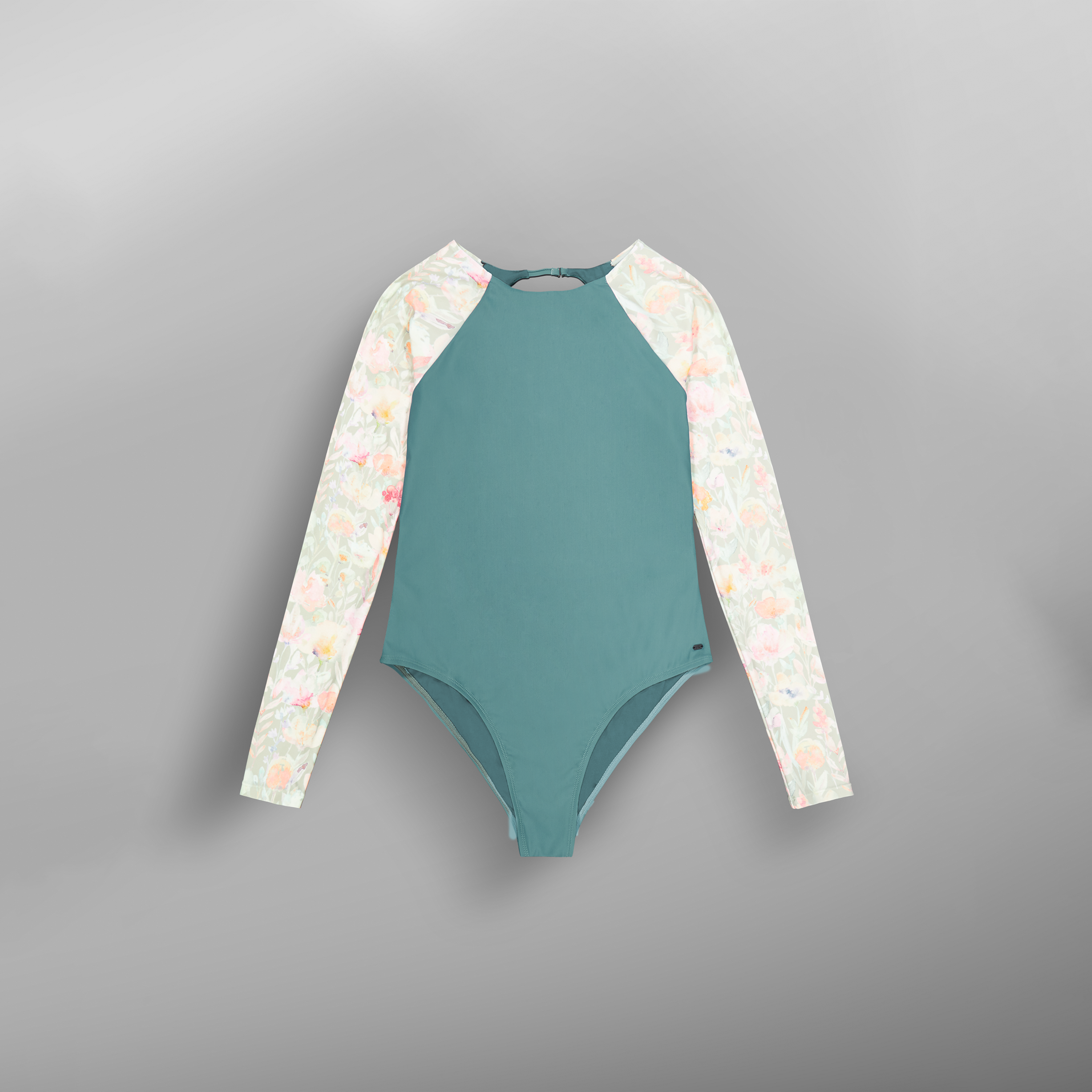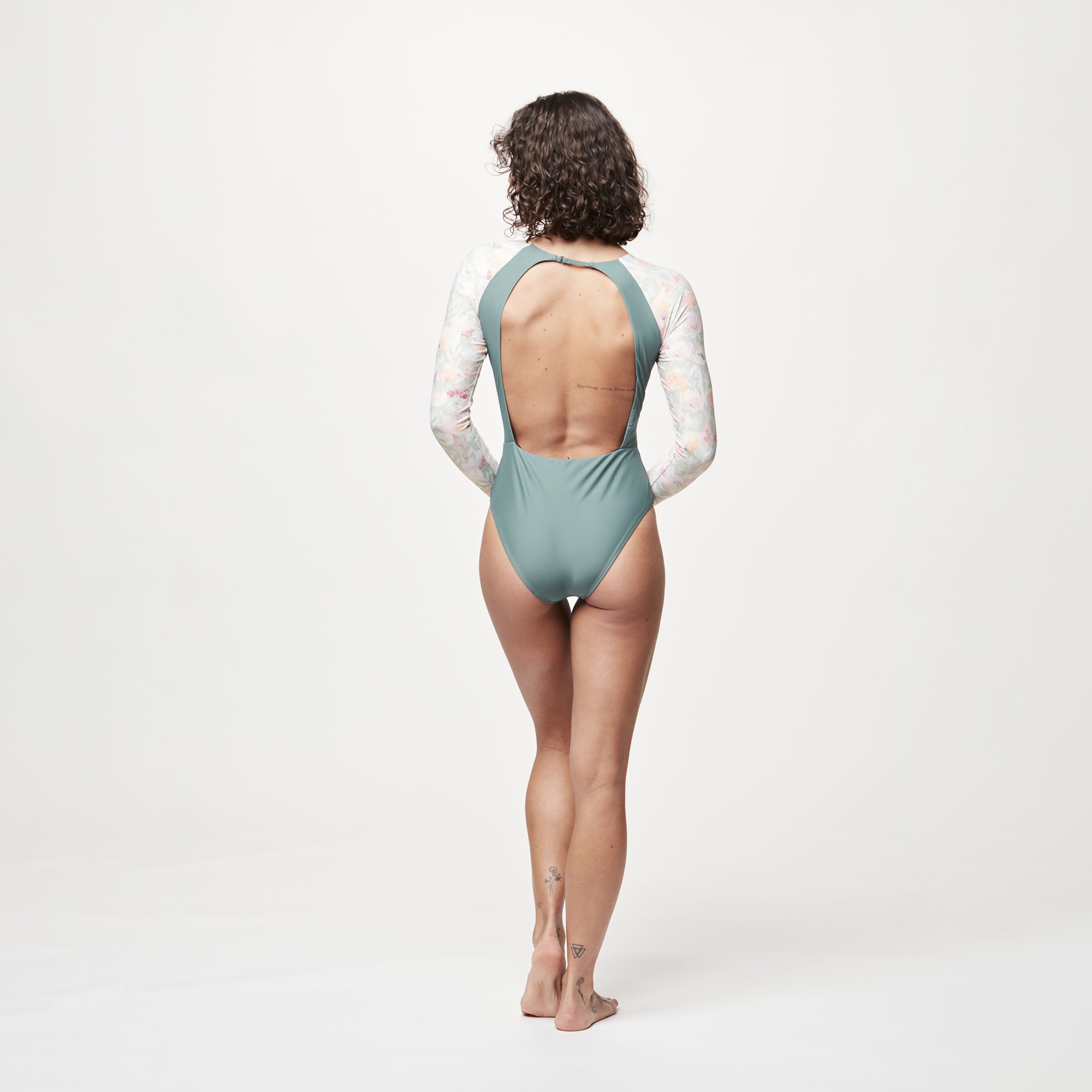 The Dyane one-piece swimsuit belongs to our full range of technical swimwear. We make this swimsuit with sustainable MIPAN® regen™ recycled nylon fabric, which offers excellent stretch, a soft feel, durability, UPF50+ protection, and is chlorine and sunscreen resistant. It also features a body jersey lining to for greater comfort and performance. This long-sleeve swimsuit is ideal for enjoying every surf session to the fullest. You will like the chafe-free seams and its stretchy, soft, and breathable material for unbelievable freedom of movement when paddling. The Dyane's long sleeves, open-back, high leg line, and regular coverage offer style and comfort in the water.