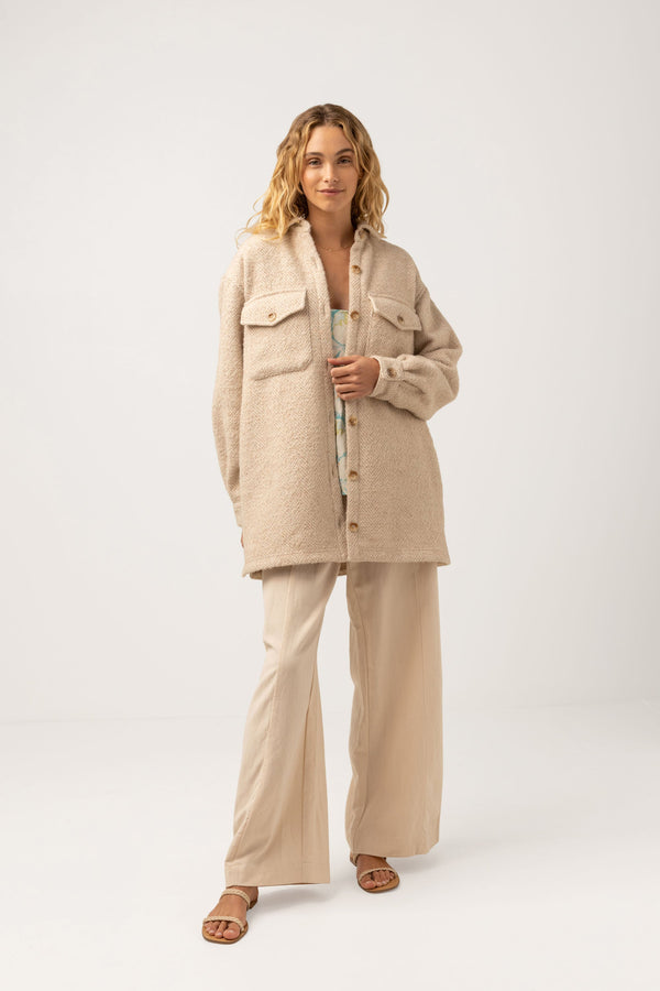Perfect for layering on crisp mornings getting up before dawn to catch the sunrise, the Alaska Longline Shacket in a soft wool blend is the perfect boyfriend style overshirt made to wear throughout the seasons.