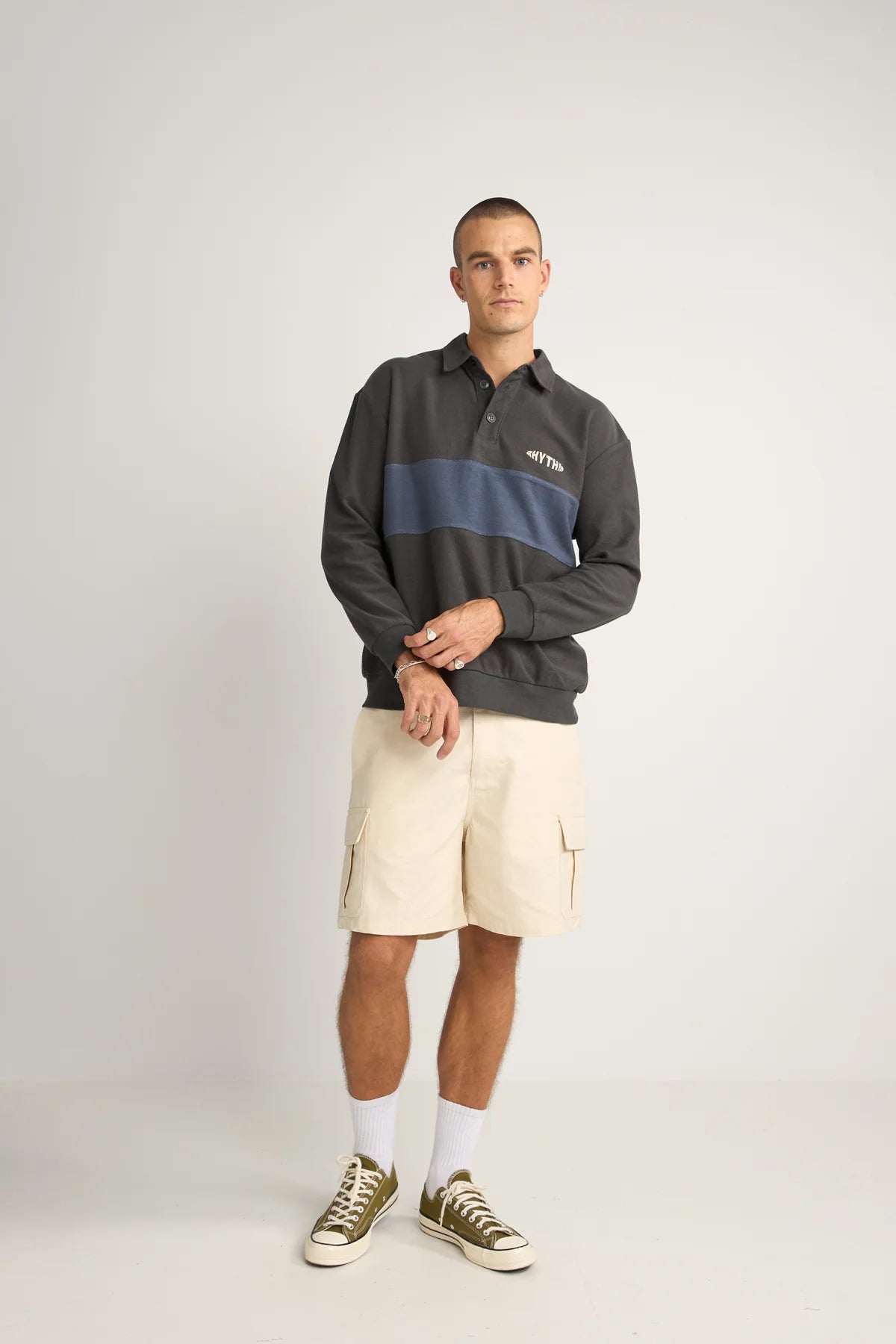 The Terry Vintage LS Rugby Shirt in Charcoal offers a blend of classic sports style and modern comfort. Made from soft midweight cotton terry, it features a standard fit, dry hand feel, contrast panels, long sleeves, and chest embroidery ‚ making it ideal for both game day and the off season.