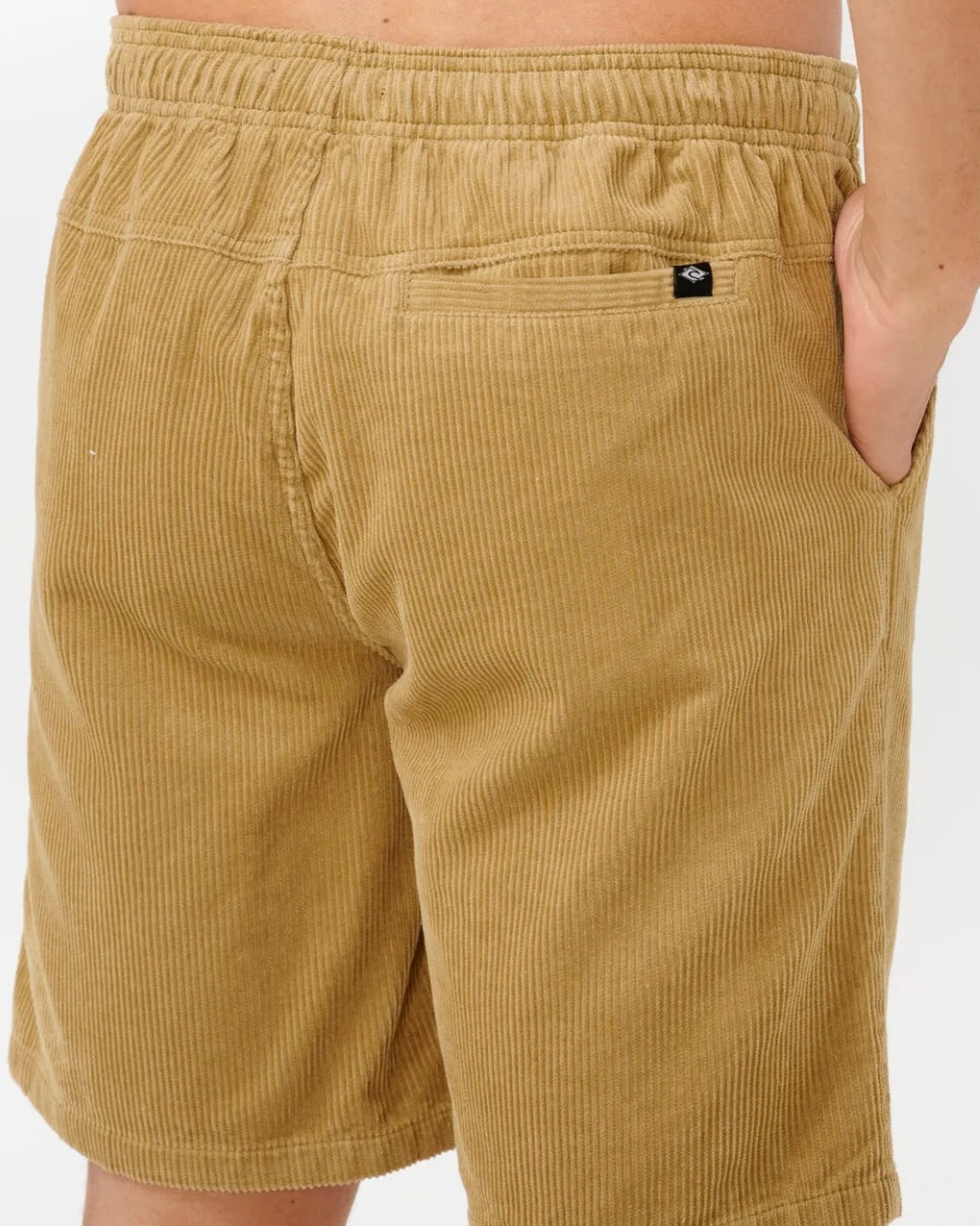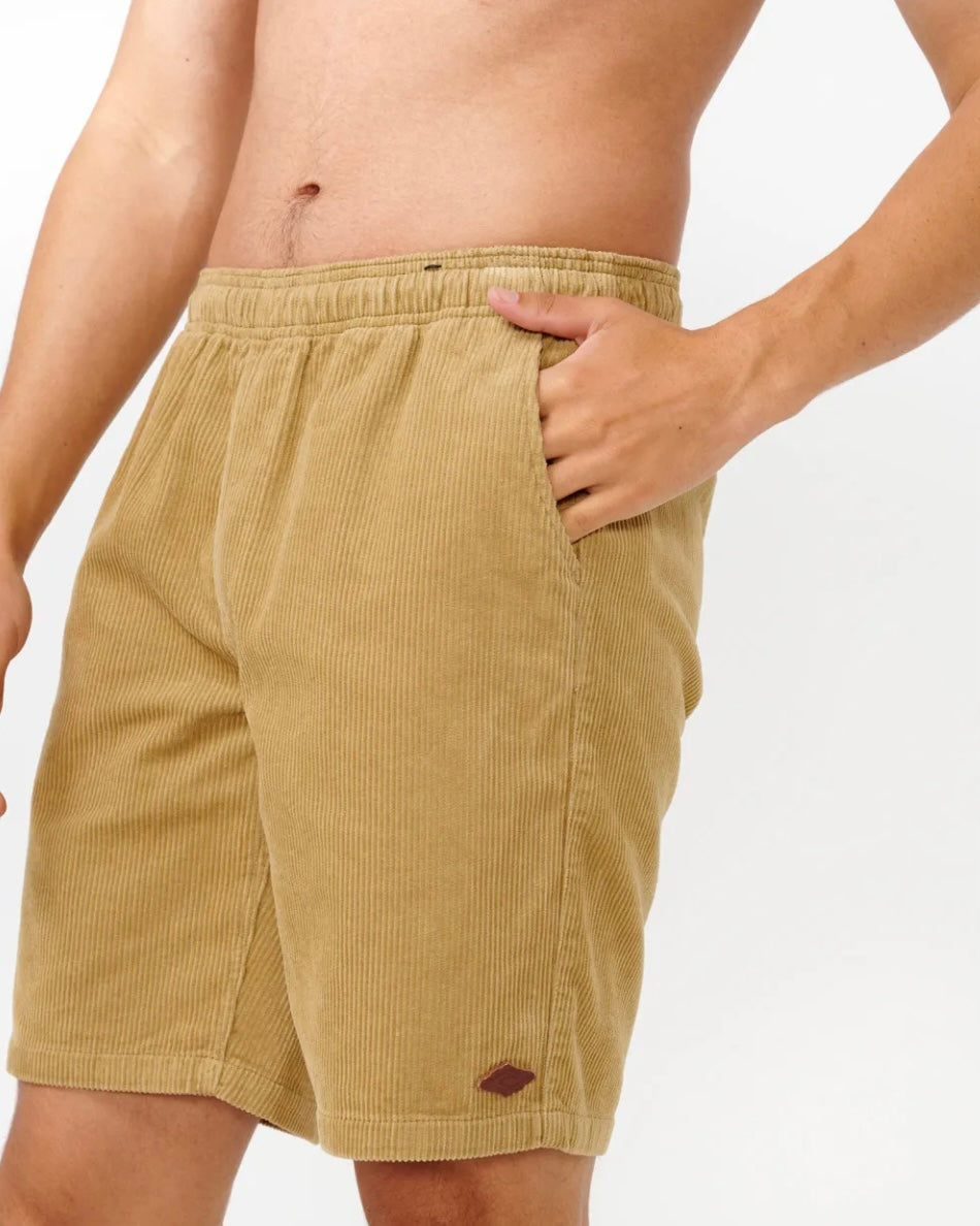 Hit the waves in the Classic Surf Cord Volley Shorts, featuring side pockets, a woven label, leather label, and an elastic waist with drawcord for a comfortable and stylish surf look.