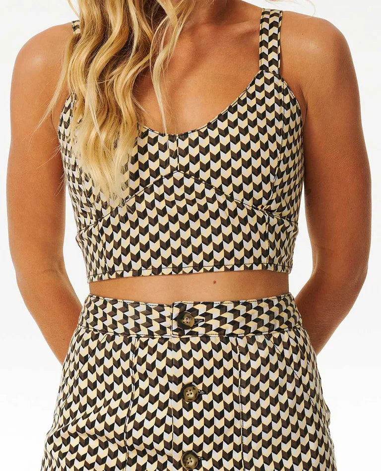 Embrace vibrant style with the Isla Geo Top. This fitted shirt is made from linen viscose slub fabric, offering a comfortable and breathable feel. The softener wash adds a touch of softness to the fabric. With its all-over yardage print, adjustable straps, and smocking detail, this top is both fashionable and versatile. Whether you're heading to a summer party or enjoying a day out, the Isla Geo Top adds a pop of personality to your outfit.