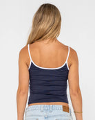 Slim Fit Standard Length Singlet with Centre Front Print and Contrast Bind. 100% Cotton Midweight Jersey