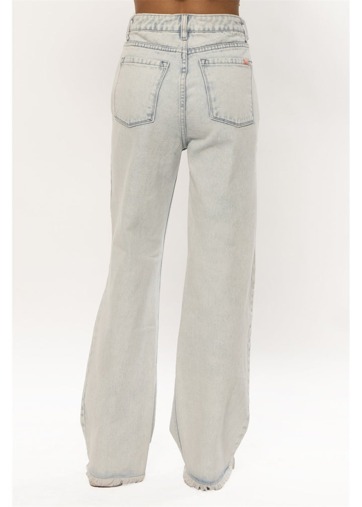 Blair is on the edge . . . a rigid high waist denim pant with 5 pocket detail, made from 100% cotton. Additional garment features include a zip fly with branded button and rivets, a slight wide leg with distressed appearance.