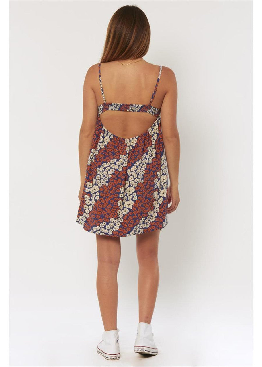 Flattering flower field mini dress with a smocked neckline and elastic scoop back. No need to stop dreamin .