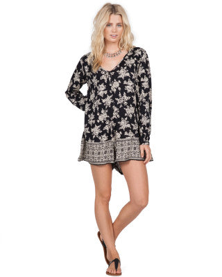 Relaxed fit long sleeves romper with gathering at shoulder seam