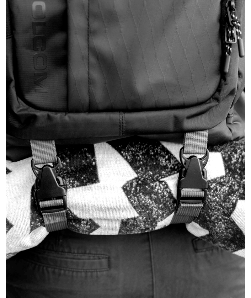 - Ergonomic mesh lined shoulder straps, and back panel Stone logo quilt